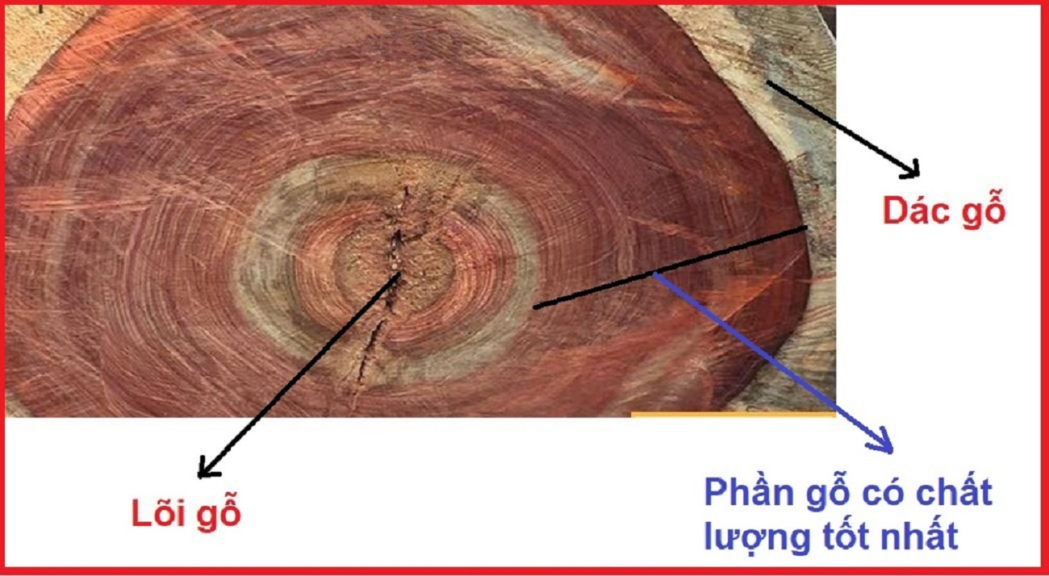 Mặt cắt của một cây gỗ có 3 phần chính. Lõi gỗ, dác gỗ, và phần vỏ.