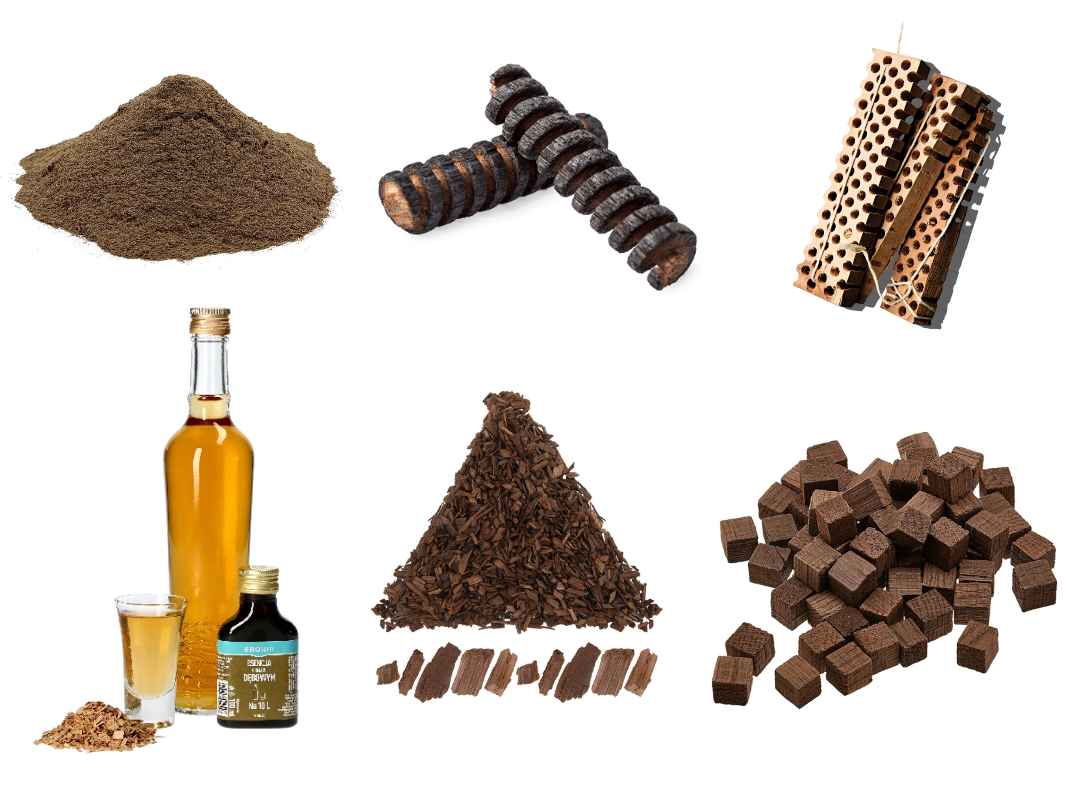 Trong đó, những phụ gia gỗ sồi, một sự lựa chọn thay thế cho thùng gỗ sồi như vụn gỗ sồi, viên gỗ sồi, thanh gỗ sồi dạng xoắn, thanh gỗ sồi dạng tổ ong, bột gỗ sồi, và tinh dầu gỗ sồi hiện đang được sử dụng phổ biến trong ngành rượu, mỗi loại đều mang lại những đặc điểm riêng biệt về hương vị và cách sử dụng.