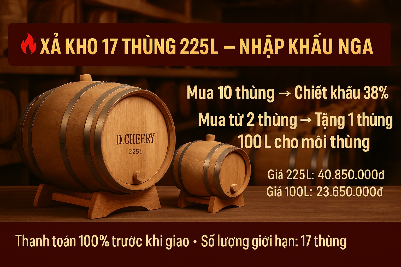 D.CHEERY chính thức mở chương trình xả kho 17 thùng 225L NK Nga, số lượng cực giới hạn.