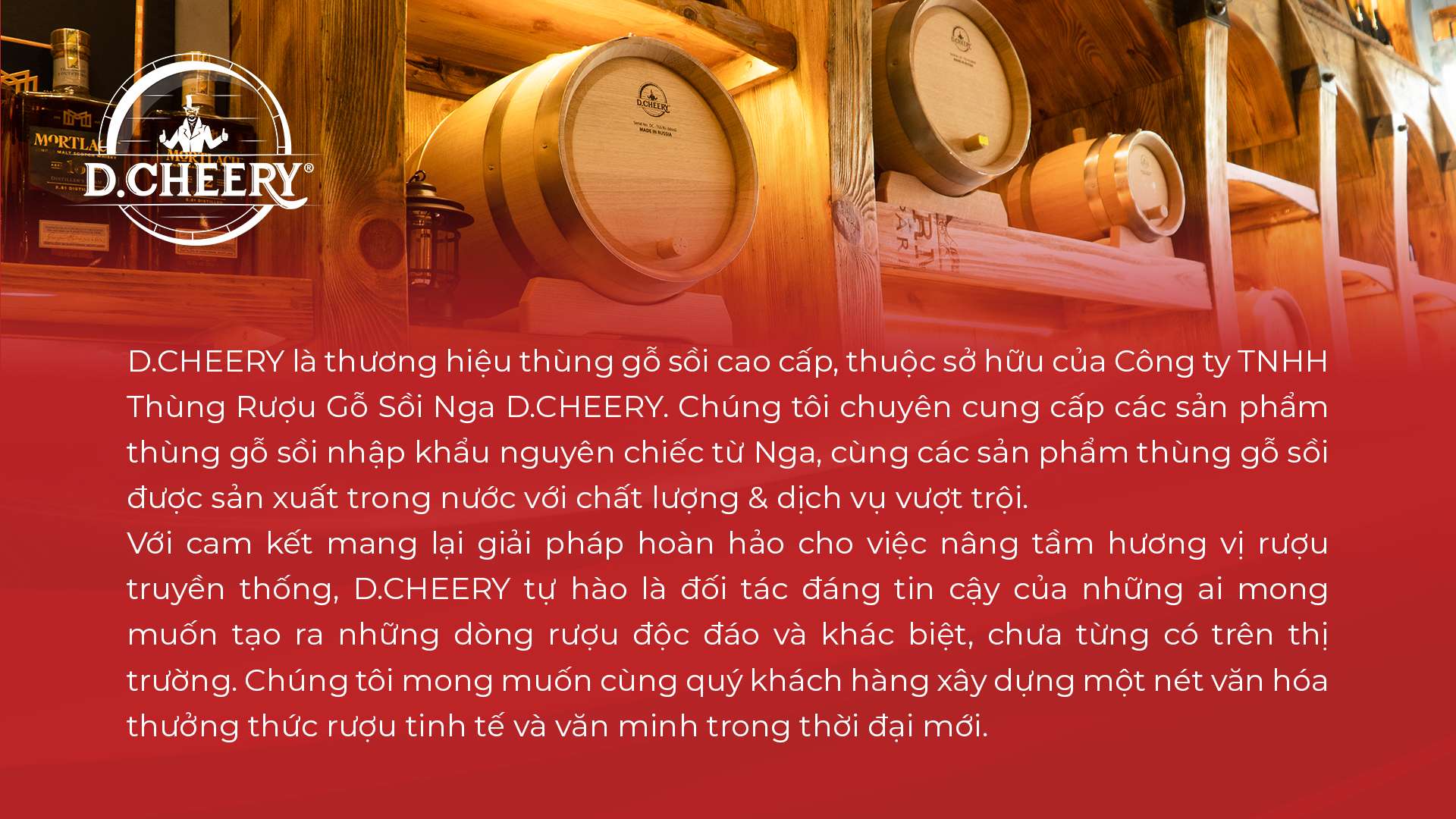 Thương hiệu D.CHEERY® là sự giao thoa giữa văn hóa thưởng thức rượu của phương Tây kết hợp với nét đẹp lâu đời trong văn hoá rượu của người Việt, giúp mang đến cho khách hàng ý nghĩa tinh tế của việc sử dụng rượu trong đời sống hàng ngày.