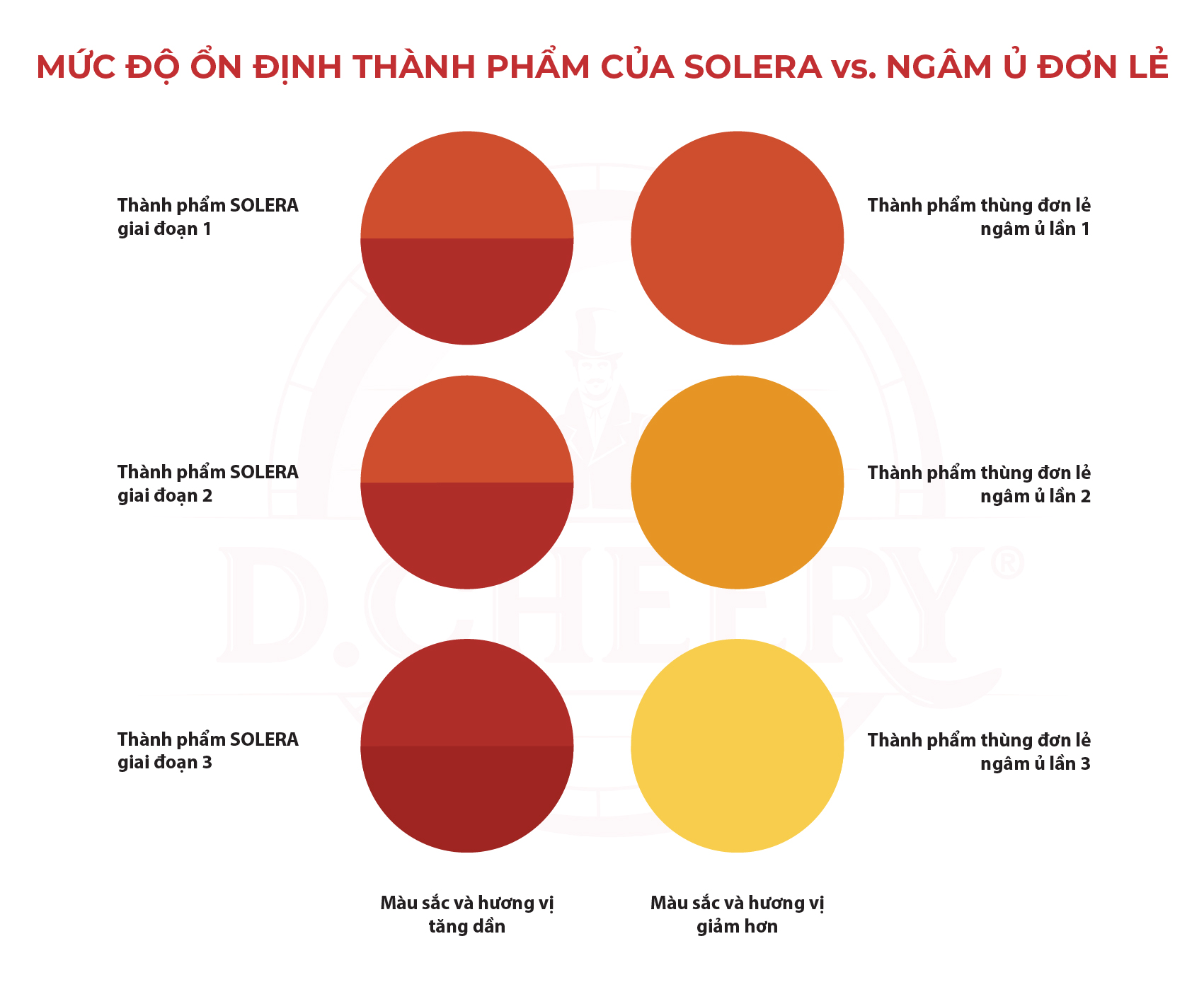 Hệ thống SOLERA sẽ ngâm ủ + phối trộn theo 5 lần, có thể ngâm ủ nhiều lần hơn khi bổ sung thêm chip gỗ sồi giúp rượu nâng cao chất lượng hơn.