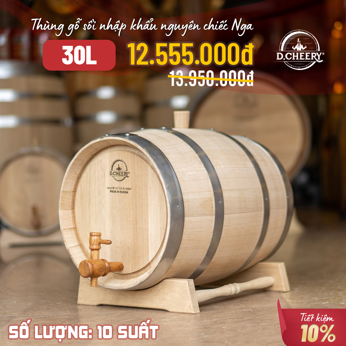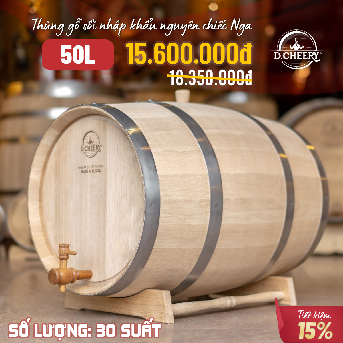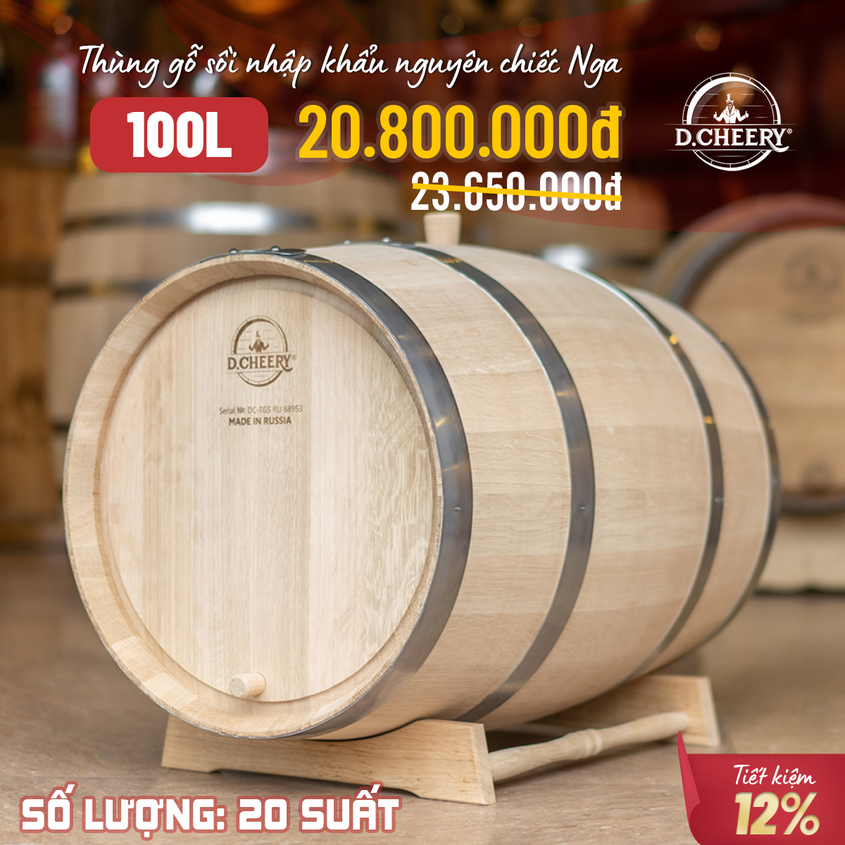 THÙNG RƯỢU GỖ SỒI NGA D.CHEERY - HƯƠNG VỊ DI SẢN RƯỢU VIỆT