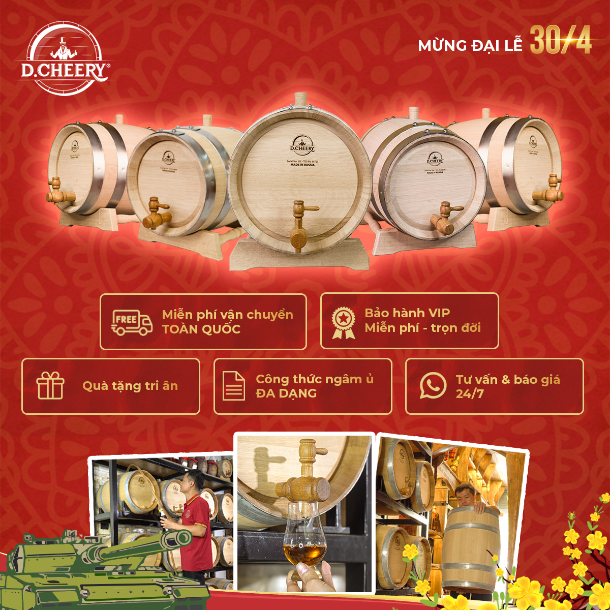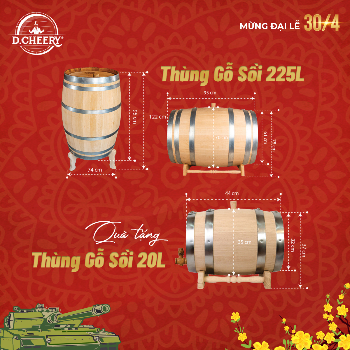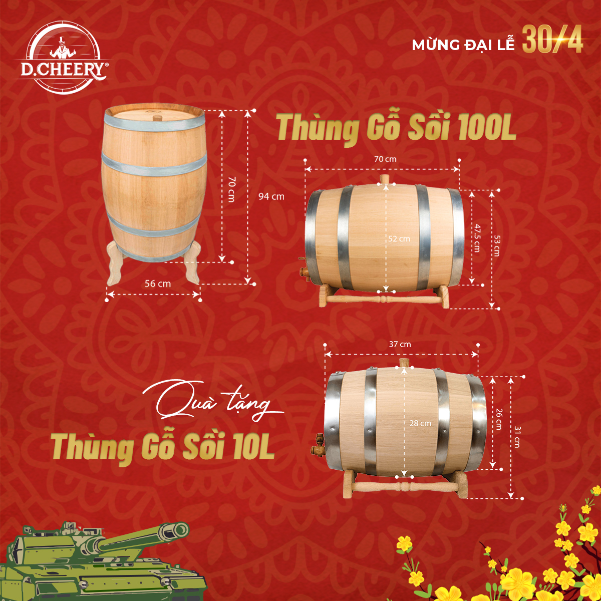 🎁 ƯU ĐÃI dành riêng cho dòng sản phẩm thùng gỗ sồi nhập khẩu nguyên chiếc Nga D.CHEERY: