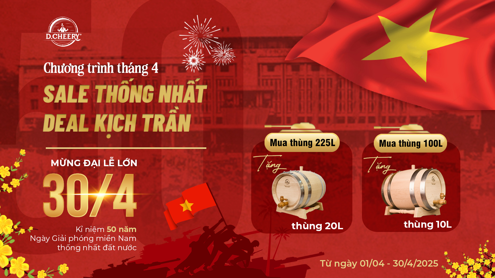 ♥️ Chào mừng kỷ niệm 50 năm Ngày Giải phóng miền Nam - Thống nhất đất nước 30/4, D.CHEERY xin gửi đến quý khách hàng Chương trình khuyến mại đặc biệt.