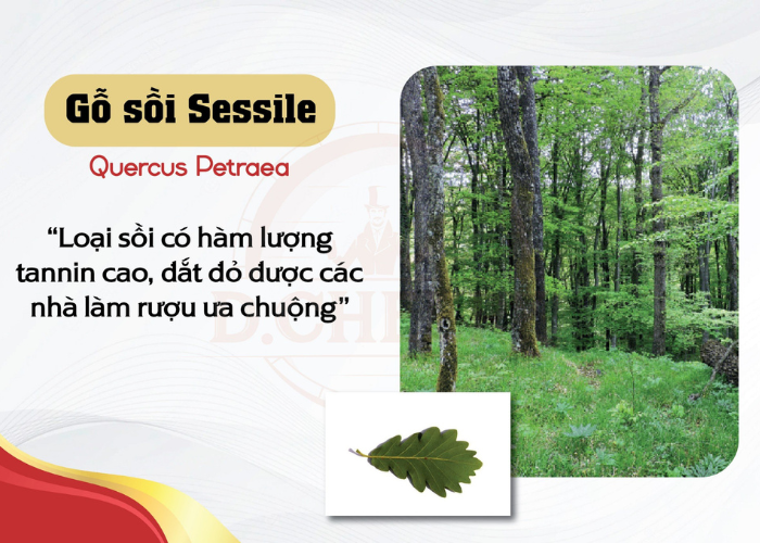 Tannin: Gỗ sồi Sessile thường có lượng tannin cao, tạo ra một cấu trúc mạnh mẽ cho rượu.