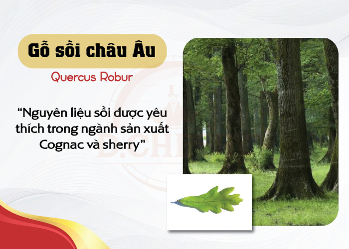 Xuất xứ: Gỗ sồi Châu Âu (Quercus robur), còn được biết đến với tên gọi gỗ sồi pedunculate, là một loại gỗ quý được sử dụng rộng rãi trong việc làm thùng gỗ sồi để ủ rượu. Gỗ sồi Châu Âu phát triển mạnh mẽ trong các khu rừng ở Pháp, đặc biệt là ở các khu rừng như Allier, Limousin, Nevers, Tronçais, và Vosges. Loại gỗ này cũng được tìm thấy ở các quốc gia Đông Âu như Romania, Hungary, và Slovenia.