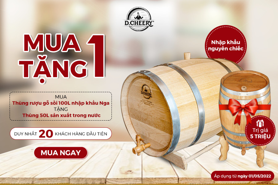 TẶNG NGAY 1 thùng gỗ sồi 50L sản xuất trong nước