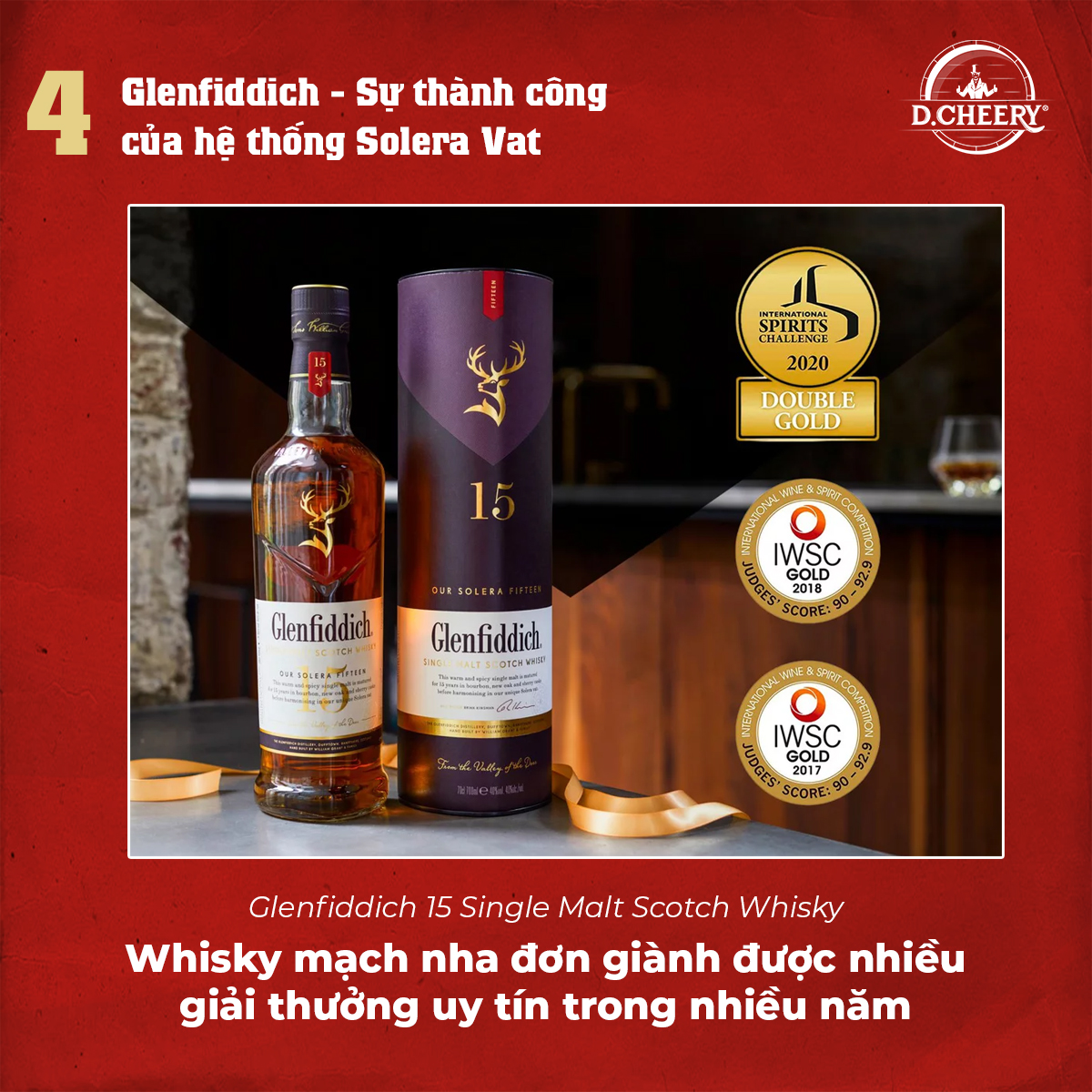 Những giải thưởng trên giúp khẳng định Glenfiddich 15 không chỉ được công nhận rộng rãi về chất lượng và sự sáng tạo trong ngành sản xuất whisky, là một biểu tượng điển hình của việc áp dụng thành công hệ thống ngâm ủ Solera Vat!