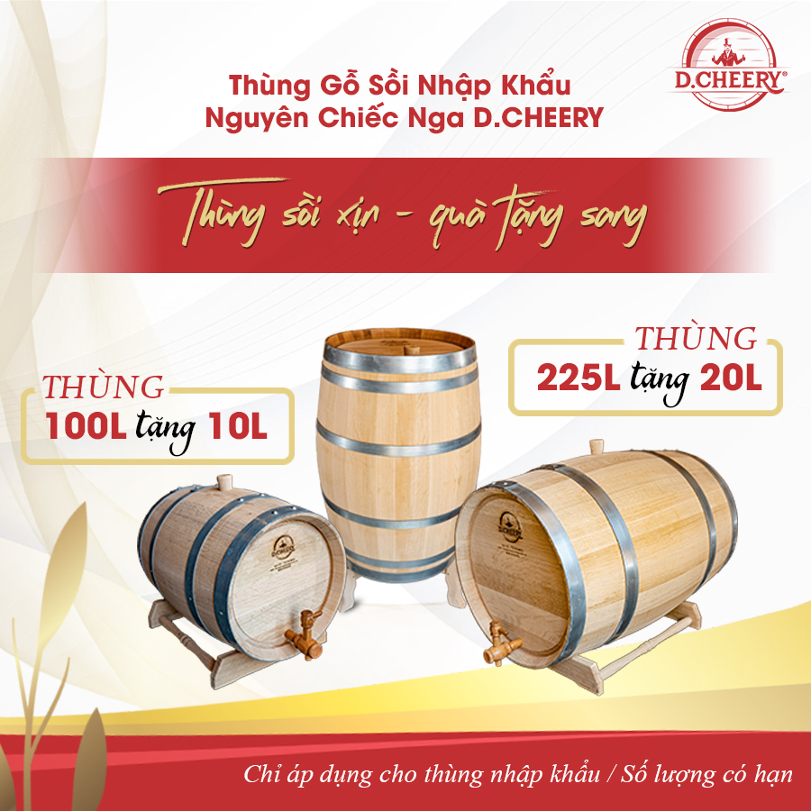 Xem thêmTHÙNG SỒI XỊN - QUÀ TẶNG SANG Để giúp bạn nhanh chóng có một không gian chưng cất r.ư.ợ.u thời thượng và sang trọng vừa có r.ư.ợ.u ngon để thưởng thức, khám phá ngay chương trình MUA 1 TẶNG 1 của D.CHEERY từ ngày 22/5 đến khi hết số lượng. --------------------- 𝑴𝑼𝑨 1 𝑻𝒉𝒖̀𝒏𝒈 𝑵𝒉𝒂̣̂𝒑 𝑲𝒉𝒂̂̉𝒖 𝑵𝒈𝒖𝒚𝒆̂𝒏 𝑪𝒉𝒊𝒆̂́𝒄 𝑻𝒂̣̆𝒏𝒈 1 𝑻𝒉𝒖̀𝒏𝒈 𝑵𝒉𝒂̣̂𝒑 𝑲𝒉𝒂̂̉𝒖 𝑵𝒈𝒖𝒚𝒆̂𝒏 𝑪𝒉𝒊𝒆̂́𝒄: - Thùng 225L tặng thùng 20L - Thùng 100L tặng thùng 10L Số lượng: 10 thùng mỗi loại (*Chương trình không đồng thời áp dụng với các chương trình khác) LIÊN HỆ ĐỂ SỞ HỮU NGAY NHỮNG CHIẾC THÙNG GỖ SỒI ĐẠT CHUẨN ______________________________________ THÙNG RƯỢU...