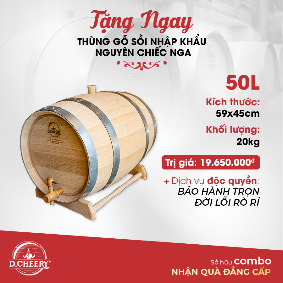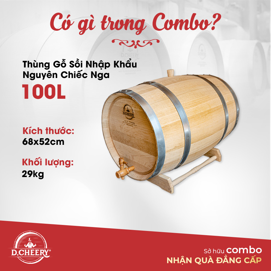 🔰 TẶNG NGAY 01 thùng gỗ sồi nhập khẩu nguyên chiếc Nga D.Cheery 50L khi mua COMBO thùng 100L + 225L