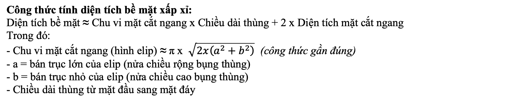 - Một thùng 225L có diện tích bề mặt 2.605 m² → SA/V = 2.605/225 ≈ 0.012 m²/L.